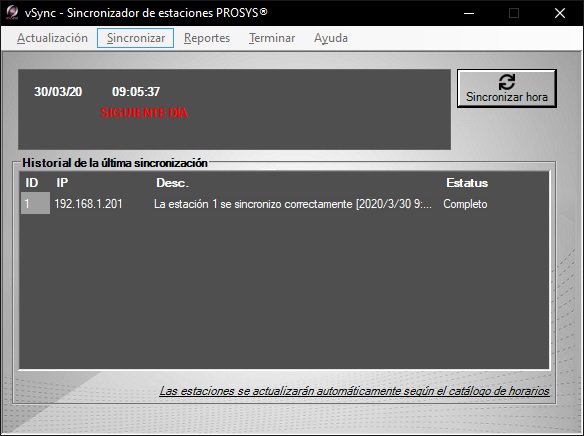 Módulo que muestra en la parte superior el horario siguiente según la tabla de horarios por día, en caso de no existir ningun otro horario para el día que esta corriendo se mostrará la leyenda "Siguiente día".